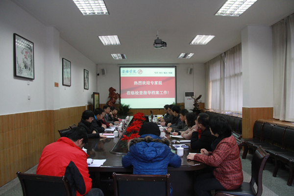 汇报会上,向纪明代表学校党政领导对省教育厅档案工作检查组一行表示热烈欢迎,并简要介绍了我校的基本情况。他指出,档案工作对于学校的建设具有重要意义,希望检查组多提宝贵意见和建议,促进我校档案工作再上新台阶。王瑛说明了档案工作检查的目的和意义。吴连书向参会人员解读了教育部和国家档案局2008年联合颁发的第27号令即《高等学校档案管理办法》,并通过省内外高校档案工作实例,使大家深刻认识到档案工作在学校教学、管理等工作中的重要性。随后,学院办公室信息档案科科长杨红从我校综合档案室概况,档案工作保障建设、业务建设、外延建设,档案工作存在的问题及今后努力的方向等方面向检查组作了详细汇报。