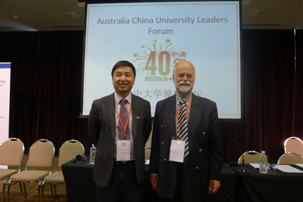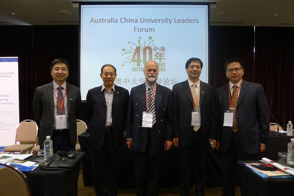 主旨为“庆祝40年的合作—澳大利亚与中国教育合作的未来”的“中国-澳大利亚大学领导论坛”于11月26—27日在澳大利亚堪培拉召开,此次活动由我国教育部与澳大利亚科研和高等教育部及澳大利亚大学联盟共同举办,是为庆祝中澳建交四十周年而举行的重要活动之一。澳大利亚科研和高等教育部部长克里斯•埃文斯,中国教育部党组成员、国家教育行政学院院长顾海良,中国驻澳大利亚大使馆陈育明大使和教育参赞李忠尚,澳大利亚大学联盟主席格莱•戴维斯等出席了本次论坛。在澳大利亚培训学习的我校党委书记杨涛教授应邀参加了这一盛会。