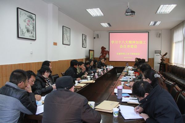 为加强工会组织建设工作,2013年元月5日,我校工会在江南校区第一会议室召开了全校工会干部培训会议,省教育工会主席张敏、副主席张朝惟、省总工会副巡视员李岳文亲临大会。学校党委副书记、工会主席胡鸿晓、副主席许宝林、袁海龙及学校工会各分会主席和工会专职干部参加了培训。会议由许宝林主持。