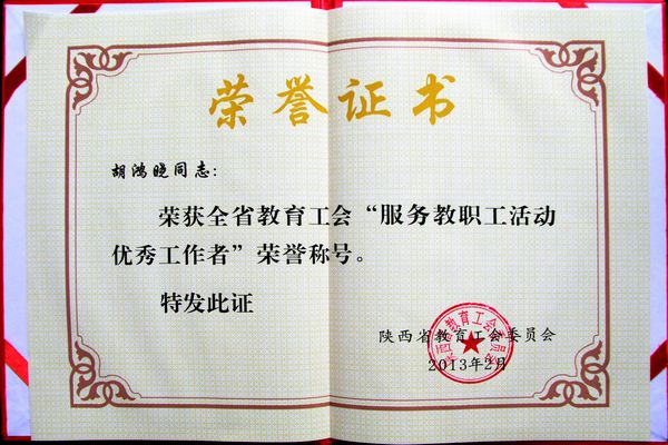 根据陕西省教育工会《关于表彰全省教育工会“服务教职工活动” 先进集体和先进个人的决定》(陕教工会〔2013〕10号)文件精神,校工会被陕西省教育工会授予2012年“服务教职工活动”先进集体称号;一位同志被授予“服务教职工活动”优秀工作者称号。