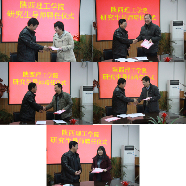 副校长向纪明向受聘的五位老师表示祝贺,希望受聘教师加强与陕西理工学院的联系,尽快熟悉研究生培养方法,搞好教学科研工作,为培养高层次创新性人才做出贡献。