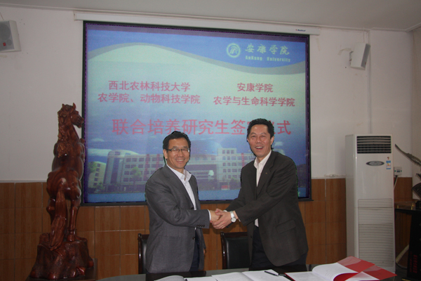 4月1日,我校农学与生命科学学院与西北农林科技大学农学院、动物科技学院联合培养研究生协议签字仪式在第一会议室举行。西北农林科技大学农学院党委书记惠安堂、副院长杜世平、动物科技学院书记闫祖书、研究生秘书阮鹏,我校副校长向纪明、科技处处长刘强、农生院院长王军、副院长杨松杰出席了签字仪式。