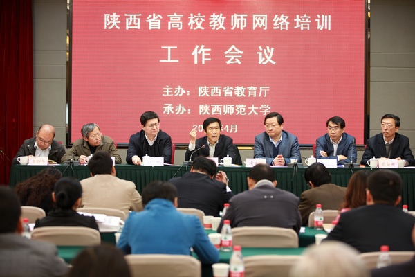 4月11日上午,“陕西省高校教师网络培训工作会议”在陕西师范大学召开。教育部全国高校教师网络培训中心主任宋永刚、陕西省教育厅副厅长张雄强、陕西师范大学副校长赵彬、教育部全国高校教师网络培训陕西分中心主任袁奋光等出席,来自全省70余所高校的人事处、教师发展中心负责人参加了会议。会议由省教育厅师资与师范教育处处长罗侃淳主持。