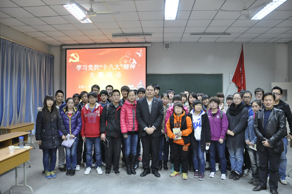 杜寿平为化学化工系学生辅导学习十八大报告结束后与师生合影