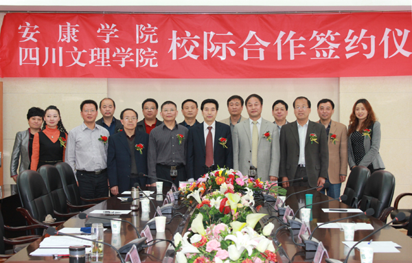签约仪式由四川文理学院副校长王洪辉主持,四川文理学院党委书记李万斌致欢迎词,校长王兴林和四川文理学院校长孟兆怀在协议上签字。四川文理学院人事处、教务处、相关院系的负责人及安康学院人事处、教师发展服务中心、数统系、外语系、教科系及艺术系负责人出席了签字仪式。