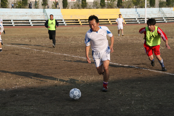 10月29日下午4点,在我院体育场由我院工会和西安文理学院工会组织的教职工足球队进行的友谊赛准时开赛。双方队员展开了激烈的角逐,我院教职工代表队凭借主场地利人和的优势上半场攻势迅猛,接连进球,西安文理学院教职工足球队在丢失两球的情况下,稳扎稳打,下半场连扳两球,最终双方以2:2握手言和。 双方球队以其精湛的球艺和良好的球风给现场观众留下了深刻的印象。此次比赛增进了我院和西安文理学院之间的沟通与交流,同时也充分展现了我院教职工和西安文理学院教职工奋发向上的精神风貌。