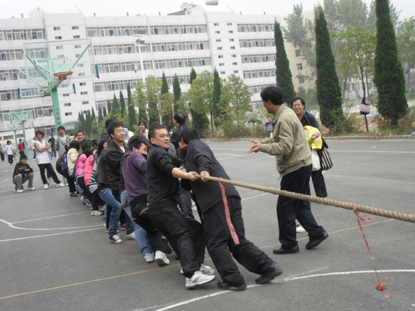 为深入推进“创先争优”活动,落实学院的“五联共建”制度,11月6日上午,机关二党支部、外语系党总支、体育系党总支在学院田径场共同举办了一次“冬季阳光体育健康活动”。学院党委组织部部长胡波、外语系党总支书记李岩、体育系党总支书记风冯德学与五十余名教师党员以及几十名学生参加了此项活动。 活动设置有滚铁环、托球跑、两人三足跑、投乒乓球、跳绳、摇呼啦圈、拔河等项目。师生们利用这次难得的户外运动机会,积极参加到冬季体育活动中来。大家精神饱满,积极参赛;比赛项目形式多样,情趣盎然。整个比赛活动场面紧张而有序,人人充分享受着运动带来的活力与快乐。 组织此项活动,旨在将“五联共建”的精神在共建单位发扬光大,旨在加强机关职能部门与教学单位的联系,更好的发挥教学部门、职能部门在教书育人、管理育人和服务育人中的作用。同时,以健康高雅的活动积极正确的引导学生,寓教育于活动之中,让他们切实感受党组织的关心和温暖,培养师生情感,激发他们认真学习的热情,促进优良校风、教风、学风的形成,推动学生全面成才。 活动也丰富了校园文化生活。