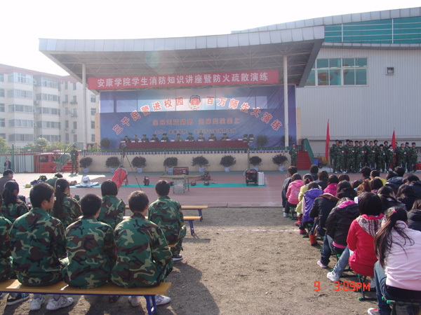 为增强广大师生消防安全意识,有效预防火灾事故发生,提高师生在突发火灾中的自我保护能力,我院围绕“全民关注消防,生命安全至上”的宣传主题,认真贯彻落实《消防法》和《高等学校消防管理规定》的精神,响应全省“三千民警进校园,百万师生大演练”的号召,在安康市消防支队的支持下积极开展消防“四个能力”建设,推进“防火墙”工程的建设。