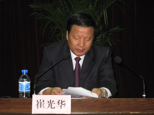 崔光华代表安康市委对安康市干部教育培训安康学院基地的成立表示热烈祝贺!对加强安康学院培训基地建设,推进全市干部教育培训工作提出了三点意见。一是建立高校培训基地是贯彻党的十七大、十七届四中全会精神的重要举措,是加强干部教育培训工作的一项创新工作,也是干部教育培训工作的新趋势,各成员单位要充分认识建立高校培训基地的重要意义,推进大规模培训干部工作深入开展;二是充分发挥高校教学资源优势,努力提高干部教育培训的针对性和实效性。要求基地科学、合理地确定培训定位,把握特点,发挥优势,认真研究干部教育培训的特点和规律,面向安康突破发展需要和干部成长需求,把自身学科优势与干部培训需求有效对接起来,精心设计出一些体现本校学科优势和特色的培训专题,打造品牌培训项目,建设精品课程体系,突出对干部的知识教育,与党校做到优势互补、各展所长、相互促进,努力把基地建设成为干部教育培训改革前沿的专门性、高层次培训基地,面向全市为各级各类干部提供服务;三是完善保障措施,确保高校培训基地规范有效运作。要求市委组织部、安康学院加强联系、密切配合,共同努力做好培训基地各项工作,为我市完成大规模培训干部、大幅度提高干部队伍素质的战略任务发挥重要作用。