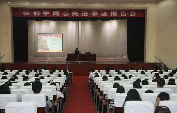 为把我校党的群众路线教育实践活动不断引向深入,9月26日下午,由学校党委组织部主办的“侯伯宇同志先进事迹报告会”在我校江南校区大礼堂举行。侯伯宇老师的学生、侯伯宇同志先进事迹报告团成员、西北大学教授杨战营从不同角度、不同侧面,用质朴的语言,饱含深情地讲述了侯伯宇同志生前在工作、学习、生活中一个个真实故事。既讲述了侯先生爱党爱国、矢志不渝、追求真理、献身科研的感人事迹,也有侯伯宇先生爱护学生,资助学生完成学业,指导学生成才的点滴故事。报告事迹感人、真情流露,在场师生无不为侯伯宇先生数十年如一日,生命不息、工作不止的精神和朴实无华、淡泊名利、精心育人、甘为人梯的高尚品格所感动,多次报以热烈掌声,表达了强烈的敬仰之情。侯伯宇同志先进事迹,生动再现了当代教师典范侯伯宇平凡而伟大的一生。校领导杨涛、胡鸿晓、闵小平、陈刚、向纪明,校教职员工、学生代表共六百余人聆听了报告会。党委副书记胡鸿晓主持报告会。