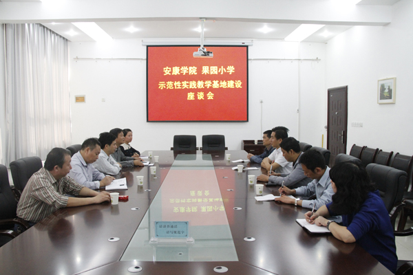 汪成建向与会代表介绍了果园小学的基本情况,感谢安康学院为果园小学培养了优秀的师资,在课程教学改革多方面提供的支持,并表示安康学院教育科学系与果园小学在教育教学的各个层面有着密切的合作,学校热烈欢迎并将大力支持实践教育基地的建设,已经委派专门人员负责并尽可能的提供一切人员和物资保障。