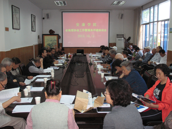 在庆祝新中国成立64周年和即将迎来2013年重阳节之际,10月11日上午,我校老教授协会会员欢聚一堂,在江南校区会议室召开安康学院老教授协会工作暨服务评建座谈会。学校党委副书记、纪委书记闵小平以及评建办、离退休管理处等部门同志参加了座谈会。座谈会由离退休管理处副处长樊仁杰主持。