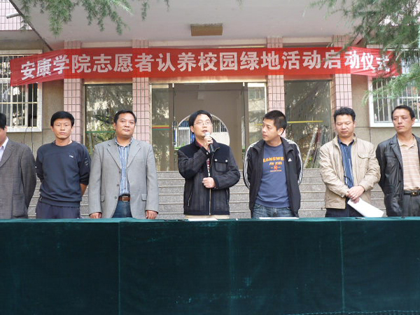 10月15日下午,由院团委和院双创办举行的“安康学院志愿者认养校园绿地活动启动仪式”在学院南院行政楼前举行。团委书记鲁延安、双创办副主任陈爱平、各院系团总支书记和我院各系志愿者代表共300余人到场参加了启动仪式。