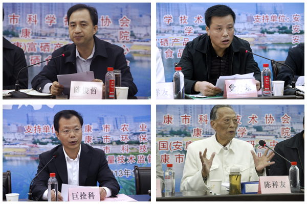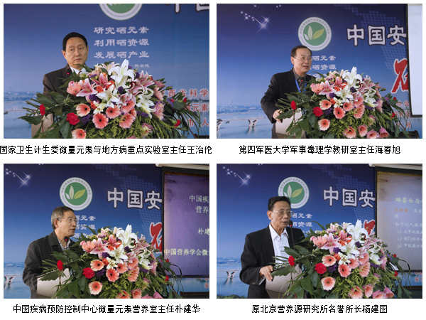 五位专家围绕“硒与人类健康”和“富硒产业发展问题”做大会交流发言,分别是:国家卫生计生委微量元素与地方病重点实验室主任王治伦,第四军医大学军事毒理学教研室主任海春旭,中国疾病预防控制中心微量元素营养室主任朴建华,原北京营养源研究所名誉所长杨建国,安康学院经济与管理系主任余谦。