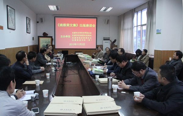 11月5日下午,由市文联与我校离退休管理处、老教授协会、安康香溪书院(筹)联合主办的《姚维荣文集》(以下简称《文集》)出版座谈会在江南校区第一会议室召开,校内外专家学者及姚维荣教授的文友、学生等三十余人参加座谈。校党委副书记胡鸿晓、市文联副主席俞斌到会讲话。会议由校党委委员、离退休管理处处长罗文谦主持。