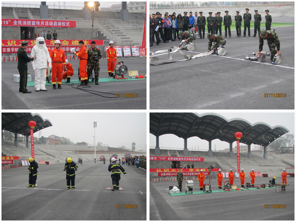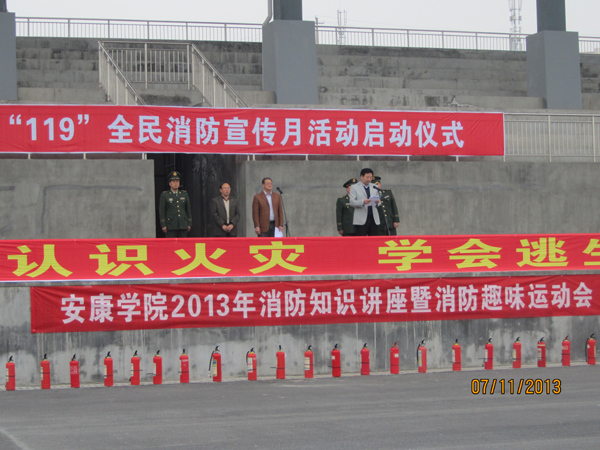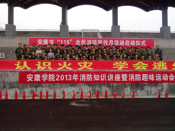 在启动仪式上,汉滨消防大队工程师给师生做了消防安全知识讲座;消防战士给大家进行了消防特种器材展示。随后,我校江北校区院系、保安、学生护校队的代表队进行了消防趣味运动会,师生在运动和娱乐中学习了消防知识。