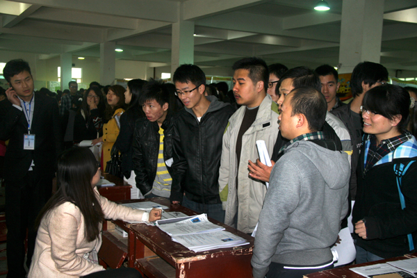 胡鸿晓致欢迎辞,对来自全国百余家用人单位莅临我校招聘人才,支持我校毕业生就业工作表示感谢。西安大秦人力资源有限公司副总经理千斌代表用人单位发言,感谢安康学院对洽谈会精心的准备,表示要尽可能多招录安康学院毕业生回报主办方的精心组织与服务。本次洽谈会有来自北京、上海、江苏、浙江、江西、广东、福建、山东、四川、安徽、江西、内蒙古、云南、宁夏以及我省西安、宝鸡、咸阳、渭南、延安、汉中、安康等地120余家用人单位参会,提供各类就业岗位3500多个,其招聘岗位涉及文化、教育、文秘、计算机、电子、能源、化工、农林、食品、艺术、音乐、美术、体育、外语、管理、物流、财会、商务、会展、营销、保险等行业领域。参加洽谈会的求职者有我校2014届毕业生及往届未就业部分毕业生、安康其它大中专院校毕业生、外地高校部分安康籍毕业生共计5000余人。现场招聘结束后,部分用人单位进行了面试或测试。毕业生踊跃应聘,据初步统计,洽谈会期间求职者与用人单位达成初步就业意向960余人,其中我校毕业生720余人。