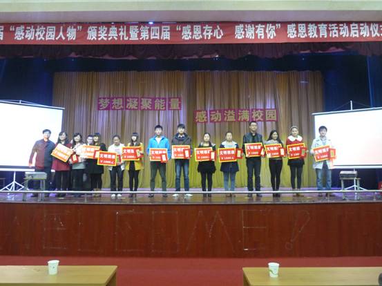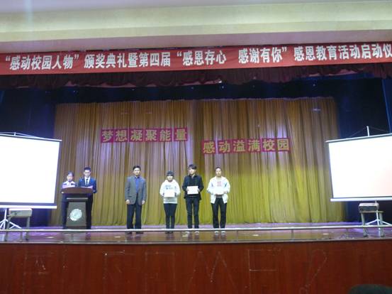 杨涛、胡鸿晓、陈刚、学生代表等分别为“感动校园人物”及提名者、“感动校园园丁”及提名者、“感动校园团体”进行了颁奖。