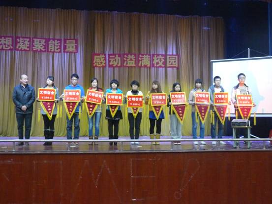 颁奖典礼还表彰了2012--2013学年度文明班级、文明宿舍,第六届大学生心理健康教育文化节先进集体、先进个人,2013年暑期大学生社会实践先进集体和先进个人以及2013年度优秀学生分会。