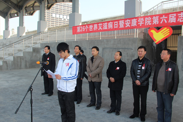 11月28日上午10点,第26届“世界艾滋病日”暨安康学院第六届志愿者文化周启动仪式在我校江北校区田径场举行,安康市副市长张全明,学校党委书记杨涛,市卫生局局长郭德林、副局长何涛,市疾控中心主任茹甫毅、副主任邹斌,市艾滋病防治领导小组部分成员及我校500余名志愿者参加了启动仪式。启动仪式由市卫生局党委书记、局长郭德林主持。