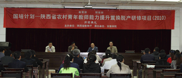 10月24日上午,由陕西省教育厅主办,安康学院承办的“国培计划”― 陕西省农村青年教师能力提升脱产置换研修(初中生物学科)培训,在图书馆六楼报告厅举行开班典礼。学院副院长杨行玉、首席专家屈国胜发表讲话,农学与生命科学学院院长王军出席,学员李芳代表全班作了表态发言。开班典礼由继续教育学院副院长王永东主持。 杨行玉指出,“国培计划”是全面落实全国教育工作会议精神和《国家中长期教育改革和发展规划纲要(2010――2020)》的第一个教育发展重大项目,是推进教师专业化发展,建设高素质教师队伍的重大举措,承担项目培训任务和参加培训学习都是义不容辞的社会责任,必须按照教育部、财政部项目要求认真扎实的组织实施。杨行玉强调,初中生物学科教师研修培训要在充分发挥安康学院生物学科建设和安康生物资源优势的基础上,紧密结合初中生物新课程实施需要,紧密结合农村中学生物教学实际,紧密结合受培学员专业化发展要求,切实提高学员实施素质教育的能力和教研科研的能力。杨行玉要求学员迅速实现由教育者向学习者的角色转换,做出专业化发展规划,通过研修培训学习为自己职业成长打好基础;要转变学习观念,调动初中生物教学的实践经验,强化实践反映力,突出研修特色;要集中精力研修学习,高标准完成研修任务。 屈国胜在分析了中学生生物教学的实际后介绍说,研修培训将采用“专家导学――学员合作研修”的方式,以教育理念转变为先导,以建构系统知识体系为先导,以建构系统知识体系为基础,以提升教育教学能力为核心,从认识与理念、知识与方法、能力与素质、科学性与艺术性等方面入手开展教学活动,要求学员深度参与、积极互动,促进专家不断调整教学方式和教学内容,努力实现学员能力提升最大化目标。 学员代表李芳发言表态说,“国培计划”给农村教师提供了集中精力研修的平台,也提供了职业可持续发展的平台,全体学员一定会珍惜这次学习的机会,为专业化发展打下坚实基础。