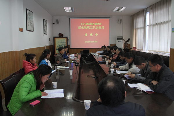 12月2日下午,学校在第一会议室举行《安康学院章程》征求教职工意见座谈会,部分中层领导、教授和博士代表、中青年教师代表、教辅后勤部门的职工代表共20余人参加会议,学校党委副书记胡鸿晓教授出席并主持会议。