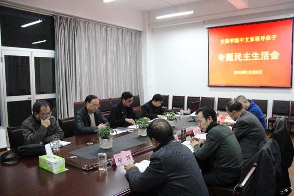 2013年12月9日晚,中文系领导班子在陕南民间文化研究中心会议室召开党的群众路线教育实践活动专题民主生活会,省属高校群众路线教育实践活动第二督导组副组长张长保、省属高校群众路线教育实践活动第二督导组成员王德忠,我校党委副书记、纪委书记闵小平,党委委员、组织部部长胡波,我校群众路线教育实践活动督导组成员谢玉玺、陈爱平,中文系领导班子成员参加了民主生活会,民主生活会由中文系党总支书记李岩主持。