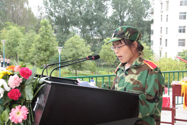 电子与信息工程系数字媒体技术专业学生强莉代表新生发言,表示一定把在军训中养成的好习惯,学到的好作风贯彻到整个的人生历程。