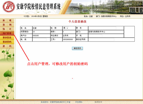 为了深入贯彻落实党的群众路线教育实践活动有关精神,进一步拓宽师生诉求渠道,畅通上下联系,建立长效机制,提高群众工作服务质量和水平,切实维护师生的根本利益,在学校党政的高度重视和积极推动下,经过电信系陈虎软件工作室和项目开发团队的共同努力,我校校情民意管理系统于2014年1月1日起正式向全校师生开通使用。