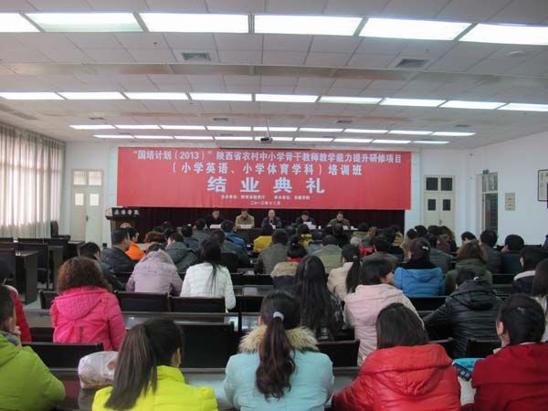 日前,我校隆重举行“国培计划(2013)”——陕西省农村中小学青年教师教育教学技能提升置换脱产研修项目小学英语学科和小学体育学科培训结业典礼。