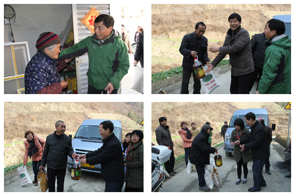 1月17日,校党委副书记、工会主席胡鸿晓,专职工会副主席许宝林,学工部部长郑树青、副部长车静等一行八人,带着安康学院党政领导和安康市慈善协会安康学院分会的亲切关怀和全体教职员工的一片爱心,为我校“两联一包”帮扶单位岚皋县民主镇新喜村送去了帮扶款,为8个贫困户送去了米、面、油和慰问金。