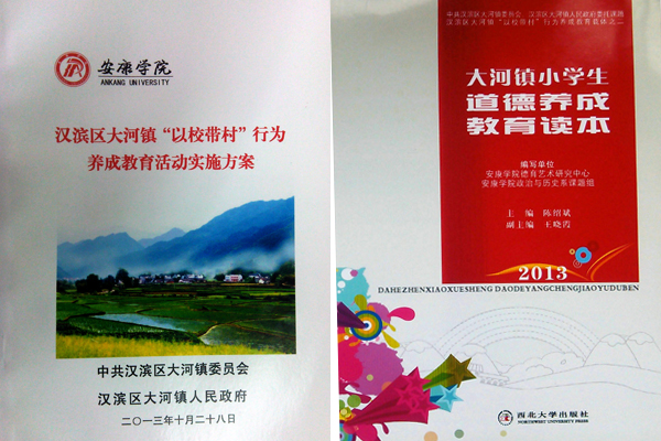 3月1日,由我校政史系《汉滨区大河镇“以校带村”行为养成教育实施方案》课题组编写的《大河镇小学生道德养成教育读本》经西北大学出版社编辑出版发行。该教材及相关教学参考将在大河镇小学四年级德育课程中使用。