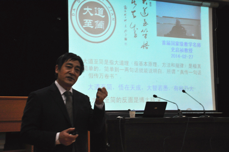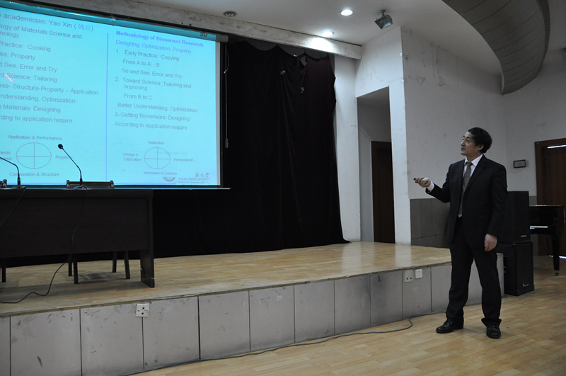 张成孝教授从专业的角度,对材料发展历史进行了简述,详细介绍了功能材料、纳米生物传感领域前沿知识,向我校师生传递了科学研究文化的精髓,鼓励大家以Confidence、Positive、Active、Creating、Cooperation、Happy的态度对待学习和工作。张成孝教授以其渊博的知识和严谨的逻辑思维使大家了解了科技前沿知识,赢得了大家热烈的掌声。