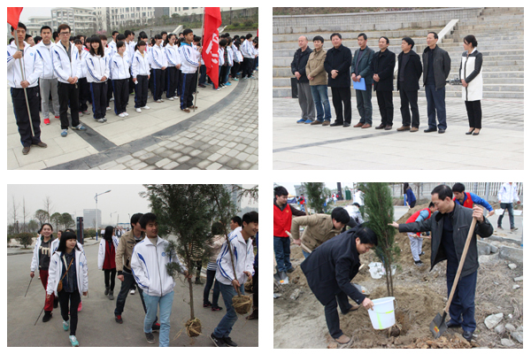 3月12日上午,我校在江北校区滨湖广场举行植树节“美化校园·爱绿护绿”活动启动仪式,安康大道片区双创办副主任张良波,学工部部长郑树青,江北校区管委会专职副主任委员刘舫、王正文,江北校区管委会办公室主任李霞,后勤保障处副处长孙保本,团委副书记李光梓、肖红香及我校江北校区青年志愿者共100余人参加了本次活动。