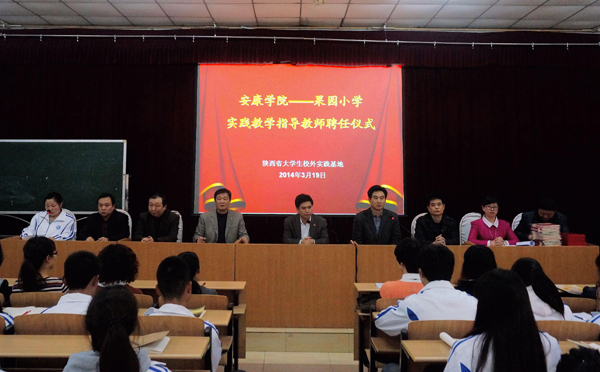 3月19日下午,安康学院——果园小学省级大学生校外实践基地指导教师聘任仪式在果园小学会议室举行。学院副校长陈刚,果园小学校长汪成建、书记张年生等参加了聘任仪式。聘任仪式由教育科学系主任黄路阳主持。