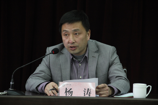 3月20日下午,我校在图书馆六楼报告厅召开学校领导班子和领导干部2013年度目标责任考核工作大会。省委高教工委委员、统战部部长李智军,省委组织部宣教干部处副调研员卢扬,省委高教工委组织部张骥,西安科技大学组织部郭小平,我校校领导、党委委员、纪委委员、学术委员会委员、工会委员,副处级以上干部,正高职称专业技术人员,市级以上人大代表、政协委员,民主党派主要负责人及学生代表130余人参加了大会。大会由党委书记杨涛主持。
