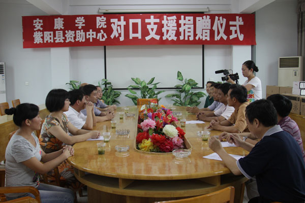 慰问期间,紫阳县委书记罗雪健、组织部长周纪林与我院领导进行了座谈。罗雪健说,罗春明是紫阳的好干部,也是安康学院的好学生。罗雪健对学院关心紫阳灾区,为灾区积极奉献爱心的行动表示感谢。罗雪健回顾了紫阳县人才与干部队伍建设的历程,高度肯定了安康学院为紫阳建设发展培养优秀人才、干部的重要作用。罗雪健表示,将加强和安康学院的合作,为紫阳建设和发展培养更多有用人才。 同日下午,在紫阳县教育局举行了安康学院向紫阳县教育局资助中心对口支援捐赠仪式,我院向紫阳县资助中心捐赠了计算机、一体机等办公设备。学院党委书记杨涛、党委副书记胡鸿晓、紫阳县副县长王启仲、县政府办公室主任康树民、县教育局局长来登志及相关人员参加了捐赠仪式。同时,双方就学院新设茶叶专业的招生、宣传工作及相关的配套政策进行了洽谈。