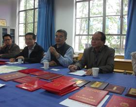 4月19日清华大学龙桂鲁教授、中科院数学与系统科学研究院骆顺龙研究员、陕师大曹怀信教授一行来我校指导专业发展并作科普讲座。下午16:30,在数统系会议室,来访学者与数统系应用数学专业和电信系应用物理专业教师举行座谈会,为两系的专业发展和人才培养提出了宝贵意见。