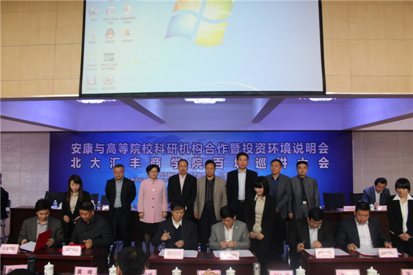 4月26日上午,省科技厅、商务厅以及安康市人民政府在安康高新国际中学报告厅举行安康高新区与高等院校科研机构合作暨投资环境说明会、北大汇丰商学院百城巡讲大会。会上,高新区管委会及合作企业与西安科技大学、西安财经学院、安康学院、西北有色金属研究院等高等院校科研机构签订了战略合作协议。