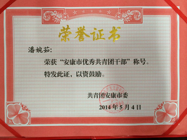 会上,共青团安康市委授予我校“安康市五四红旗团总支”等荣誉称号。其中,我校教育科学系荣获“安康市五四红旗团总支”,外语系团总支副书记潘婉茹荣获“安康市优秀共青团干部”,政史系12级历史教育专业王婧荣获“安康市优秀共青团员”荣誉称号。
