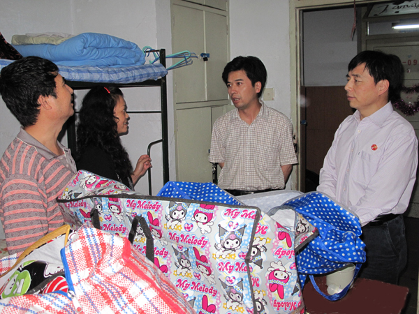 党委副书记胡鸿晓、副院长陈刚深入学生宿舍与学生家长交谈