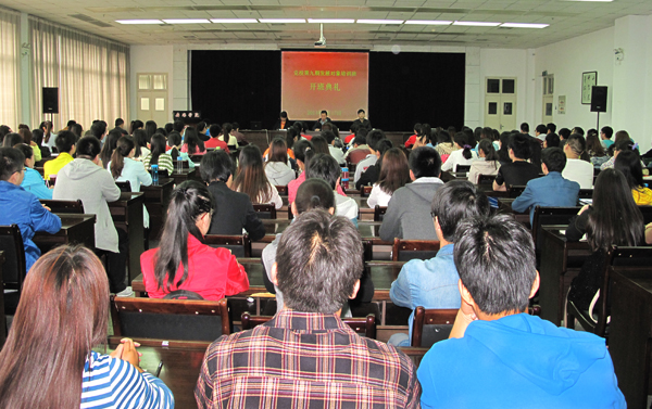 中文系2011汉语言文学三班王燕同学代表全体学员作了表态发言。