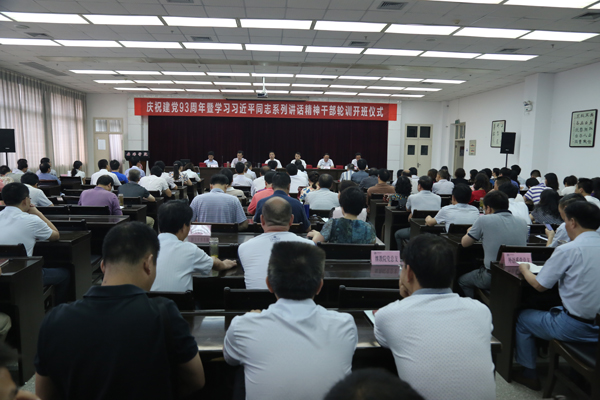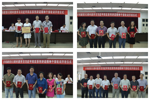 7月2日上午,我校庆祝建党93周年表彰大会暨学习习近平总书记系列讲话精神轮训开班典礼在图书馆六楼报告厅隆重举行。学校领导党委书记杨涛、党委副书记胡鸿晓、党委副书记兼纪委书记闵小平、副校长杨行玉、陈刚、向纪明出席了会议。学校各院系和部门副处以上干部、受表彰的先进集体和个人约150余人参加了大会。大会由胡鸿晓主持。