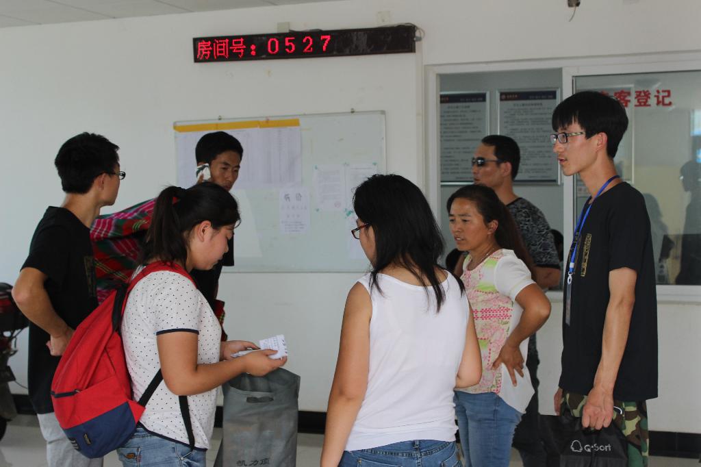 除了火车站,各系迎新点、各宿舍楼下,随处都可以见到迎新志愿者的身影。接过新生手中重重的行囊,送往宿舍楼;带领他们到各系迎新点注册,领取信息卡;为旅途劳累的家长递上一杯水;在车流川息不停的交通要道协助疏导交通;介绍学校和院系的相关情况;解答新生和家长的疑惑……