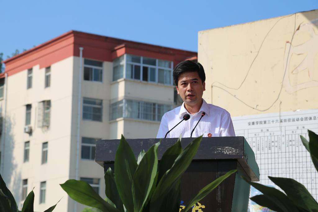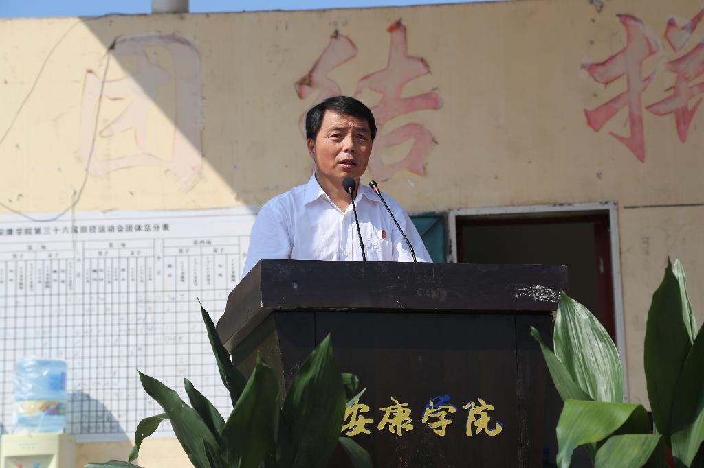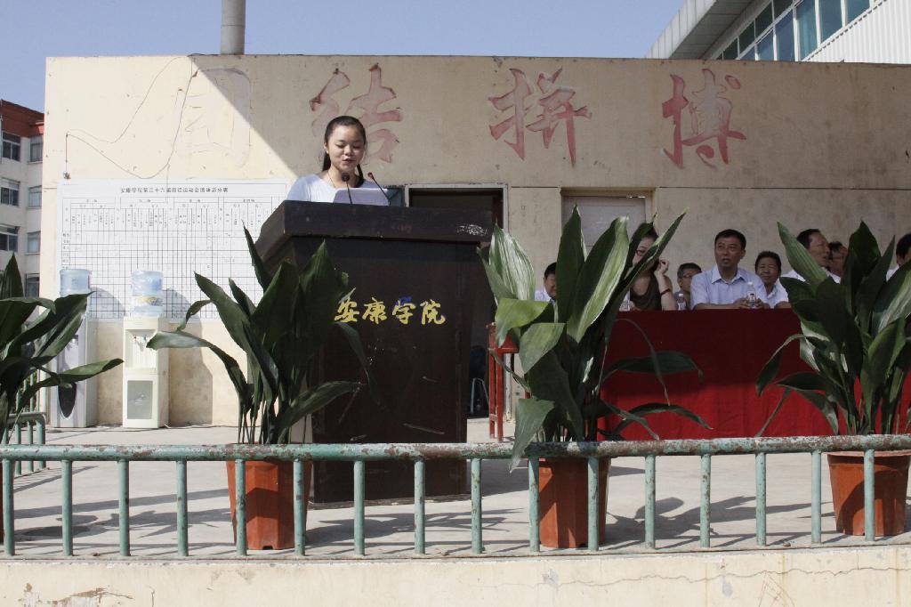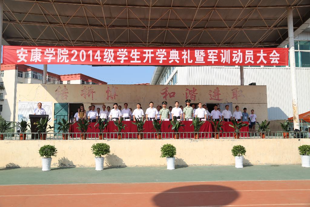 9月4日上午,我校2014级新生开学典礼暨军训动员大会在江南校区体育场隆重举行。我校党委书记杨涛,党委副书记胡鸿晓,副书记、纪委书记闵小平,副校长杨行玉、陈刚、向纪明,安康市武警支队副政委徐信军,教导大队教导员叶勇及各院系主任(院长)、党总支书记、和相关部门负责人在主席台就坐。2014级新生及各院系负责军训的辅导员、承训部队教官、教师代表参加大会。大会由杨行玉主持。