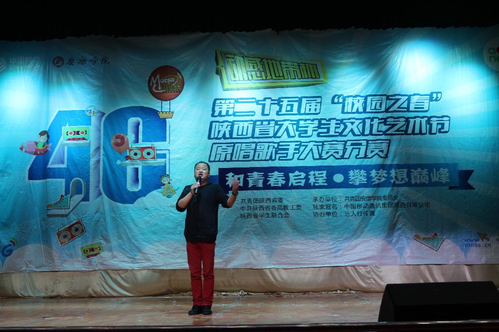 9月17日晚,由共青团陕西省委、中共陕西省委高教工委、陕西省学生联合会主办,我校团委承办的第二十五届“校园之春”陕西省大学生文化艺术节原创歌手大赛分赛在我校江南校区大礼堂成功举办。本次比赛吸引了来自我校各院系及安康职业技术学院20余名优秀歌手,他们带来了11支参赛歌曲。我校艺术系教师李磊、何静、杜恩波,安康职业技术学院杨少华及我校社团联合主席张琨担任本场比赛评委,职业技术学院医学系学工办主任杨涛,我校团委副书记李光梓、肖红香、各院系团总支书记及我校600余名同学观看了比赛。
