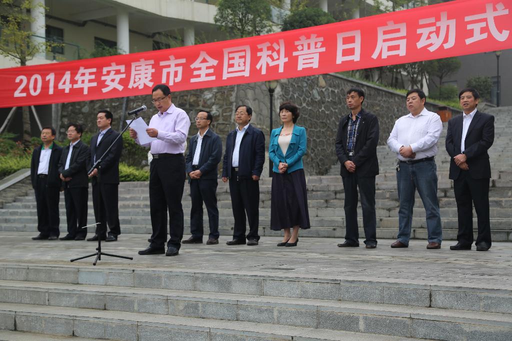 鲍永能宣布安康市科普日启动。全市广大科技工作者随即在我校虹波桥现场开展了科普宣传咨询服务活动。