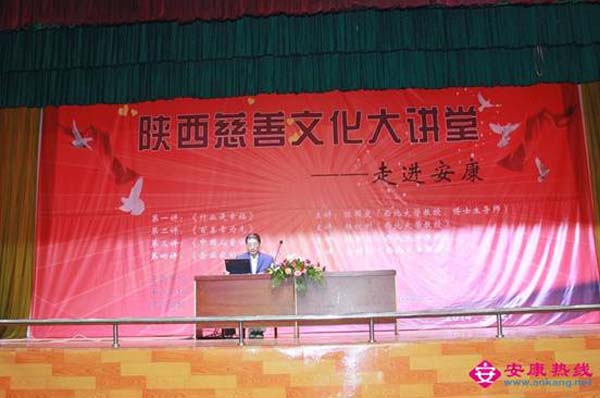 由安康市慈善协会、安康学院主办,安康市援少会承办的“陕西慈善文化大讲堂走进安康” 主题活动于2014年9月27日在我校隆重举行。西北大学4位教授受邀为本次大讲堂主讲。安康市各行各业慈善志愿者和我校慈善志愿者700余人聆听了本次讲座。大讲堂由安康市慈善协会副会长王友根主持, 安康学院副校长向纪明为大讲堂致辞。