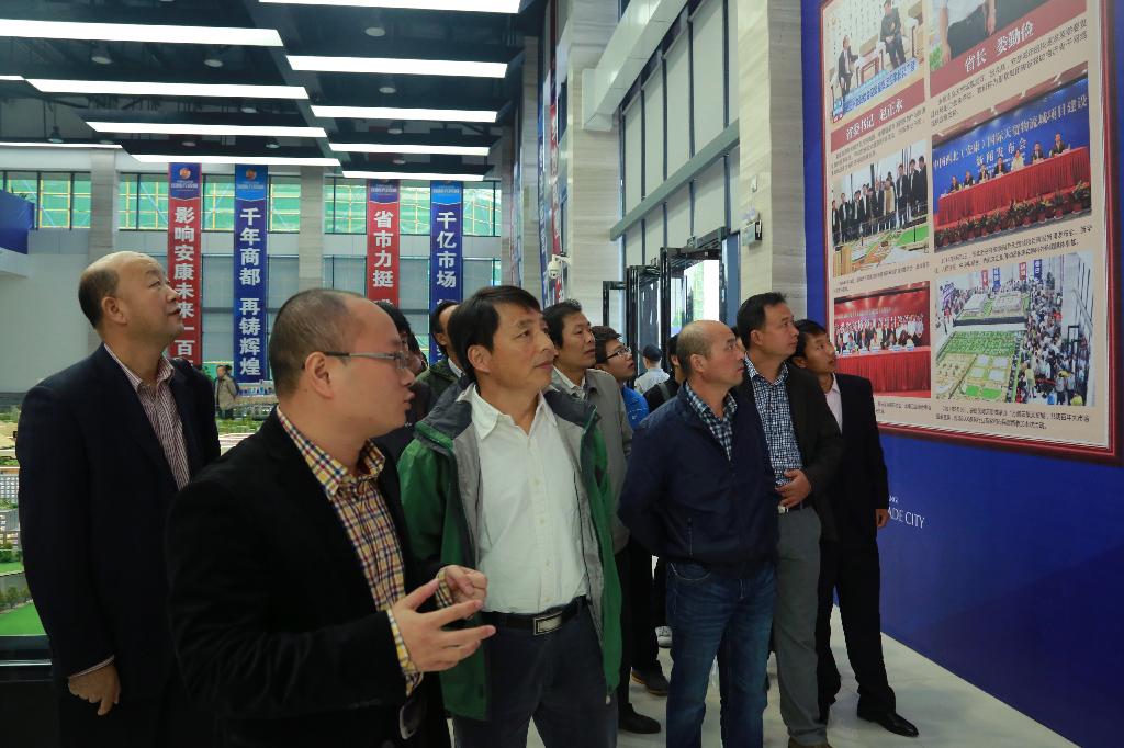 座谈会前,汪洪涛带领师生们参观了中国西北(安康)国际天贸城,并在天贸城巨大的沙盘前,介绍了天贸城项目规划及建设进展情况,观看了企业发展规划专题宣传片。