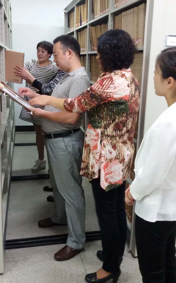 检查组深入档案库房,对我校2012、2013年度13个门类700余卷档案进行了抽查,并认真查看了档案的编研、相关目录的续编及档案利用登记情况,详细了解了我校档案归档、档案室建设等情况。